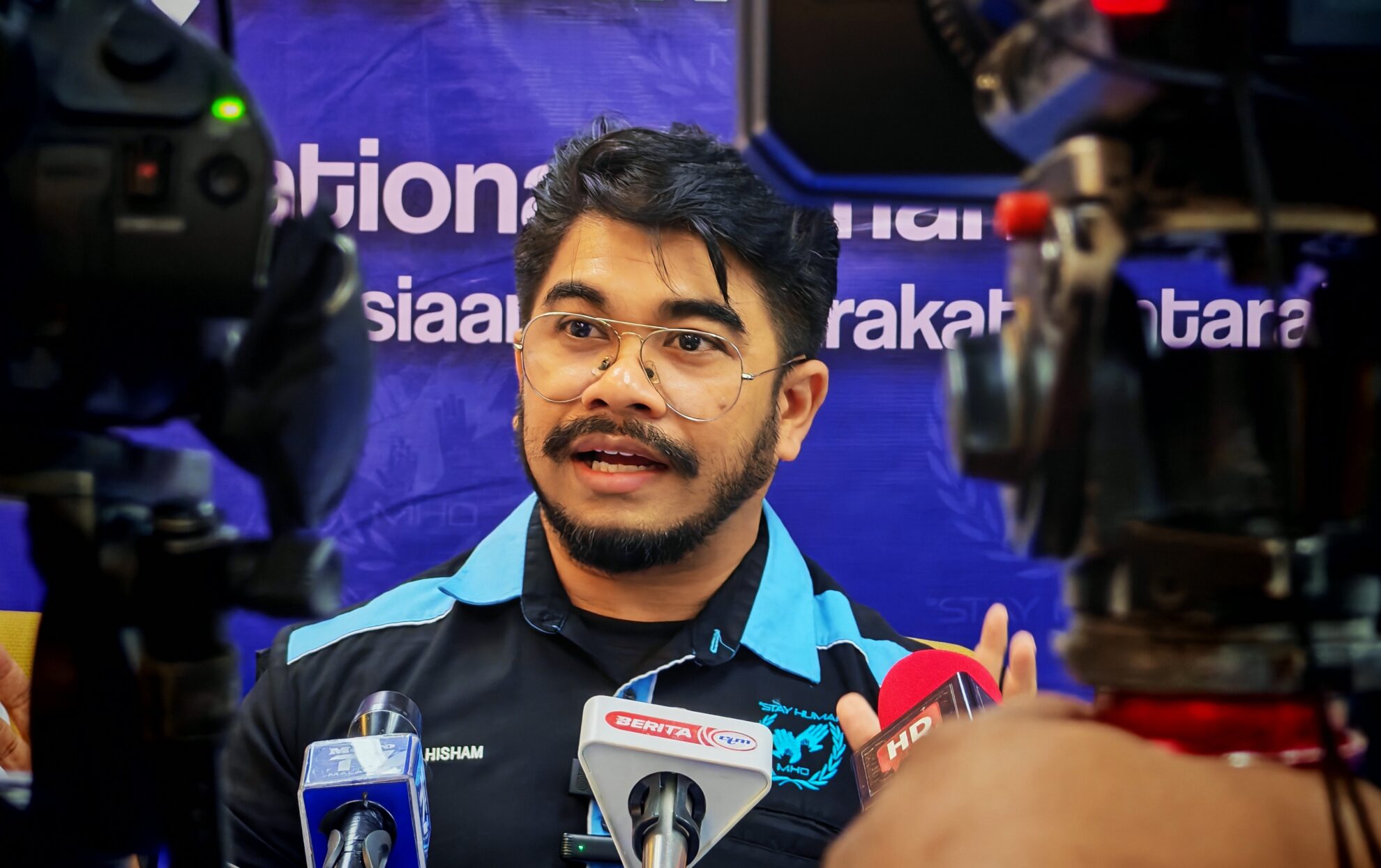 FOTO BERITA: Sidang Media oleh Dato’ Hishamuddin Hashim Setiausaha Agung Pertubuhan Kemanusiaan Masyarakat Antarabangsa Malaysia (MHO) mengenai rayuan empat keluarga mangsa anak mereka ditahan polis di Golden Triangle Special Ekonomic Zone Laos dan Cambodia disyaki jadi tebusan sindiket perdagang manusia di pejabat MHO, Megan Avenue, Jalan Tun Razak Kuala Lumpur. 9hb Julai 2025 (Rabu)