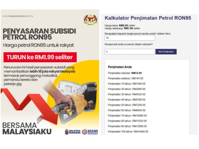 Sementara itu seorang pempengaruh, Harris Nasril menerusi Facebook miliknya pula, berkongsi inisiatif yang dicipta sendiri iaitu kalkulator penjimatan petrol RON95 yang boleh diakses secara percuma oleh orang ramai.