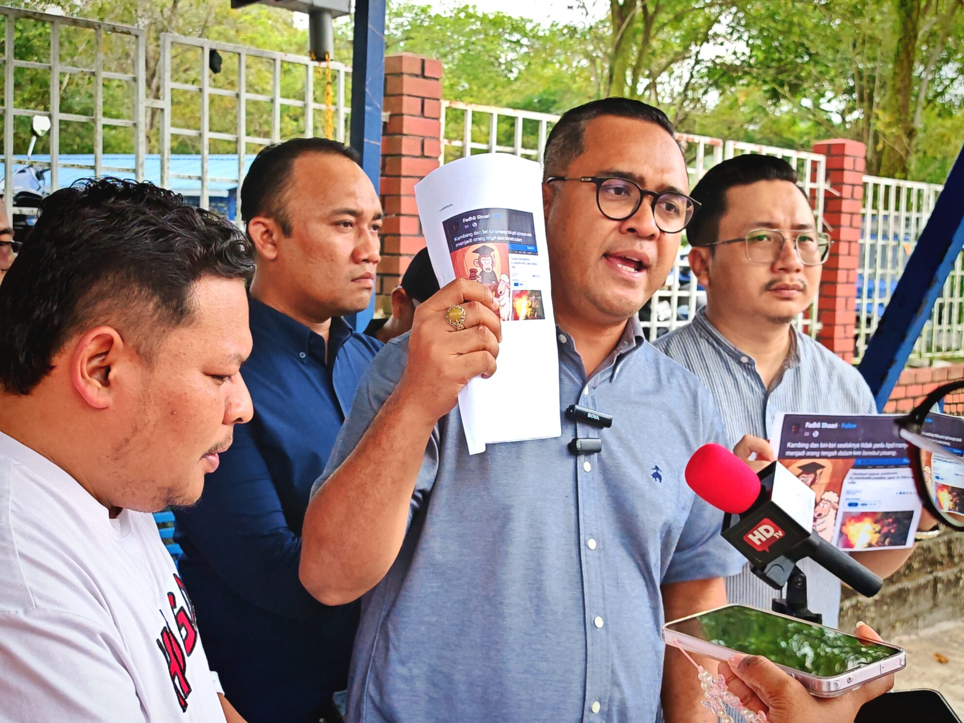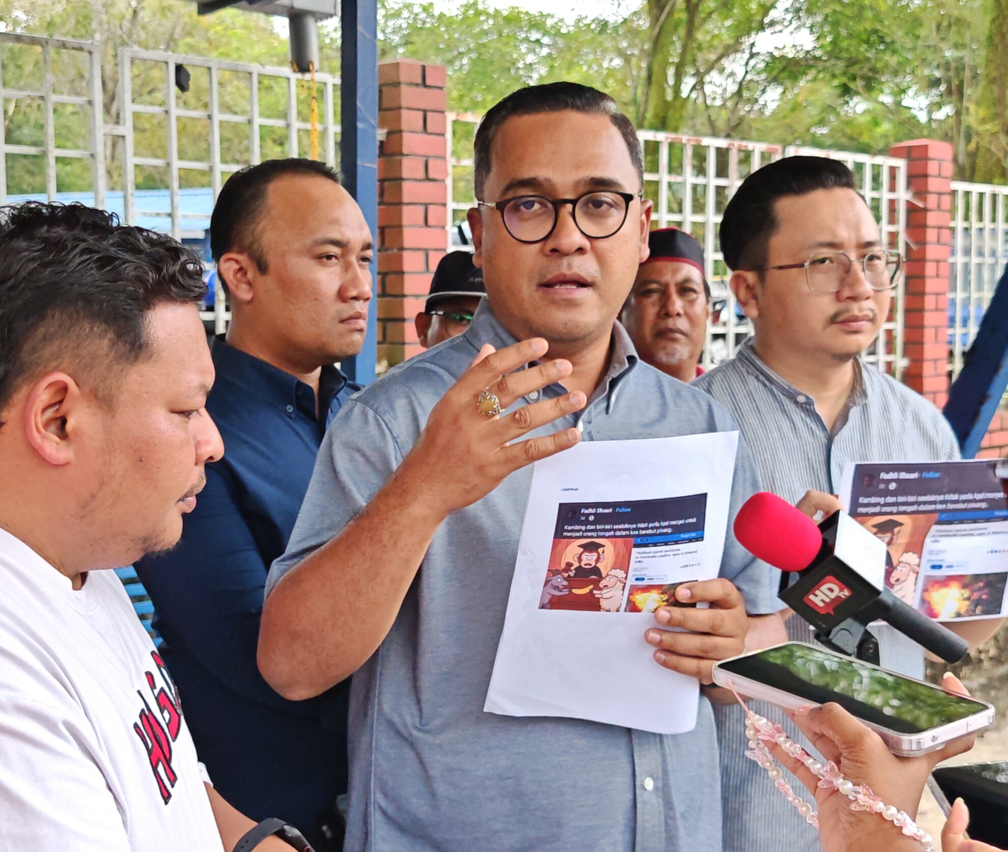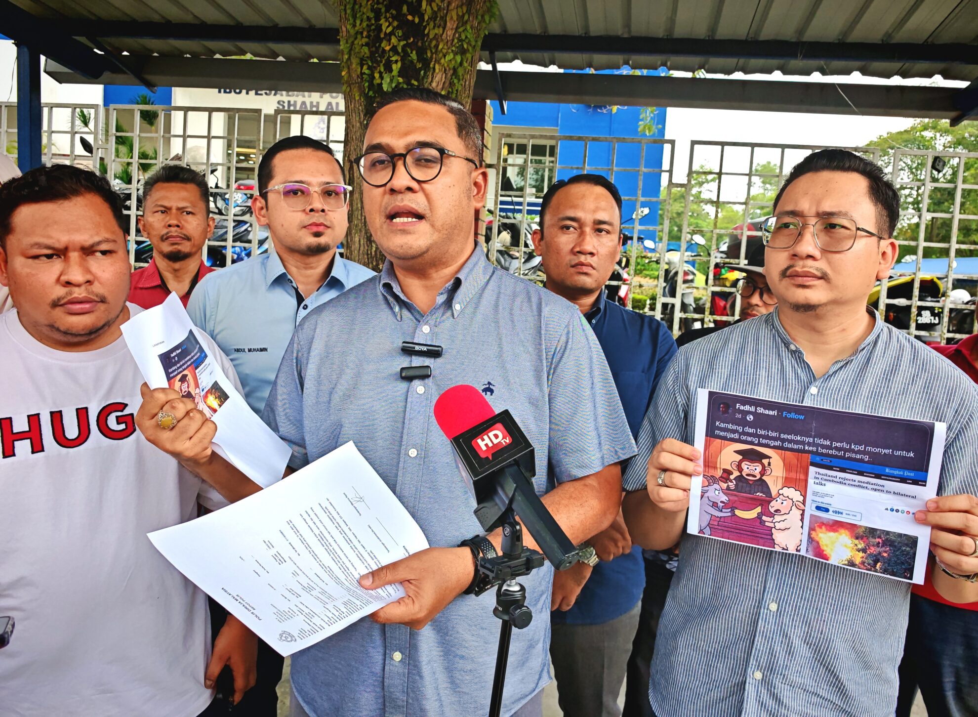 FOTO BERITA: Laporan Polis & Sidang Media oleh Pengarah Mobilisasi Amanah Nasional YB Tuan Abbas Salimi Che Azmi merangkap ADUN Sri Serdang mengenai karikatur Ketua Penerangan PAS Pusat, YB Ahmad Fadhli Shaari merangkap Ahli Parlimen Pasir Mas, di Ibu Pejabat Polis Daerah (IPD) Shah Alam, Selangor. 30hb Julai 2025 (Rabu)