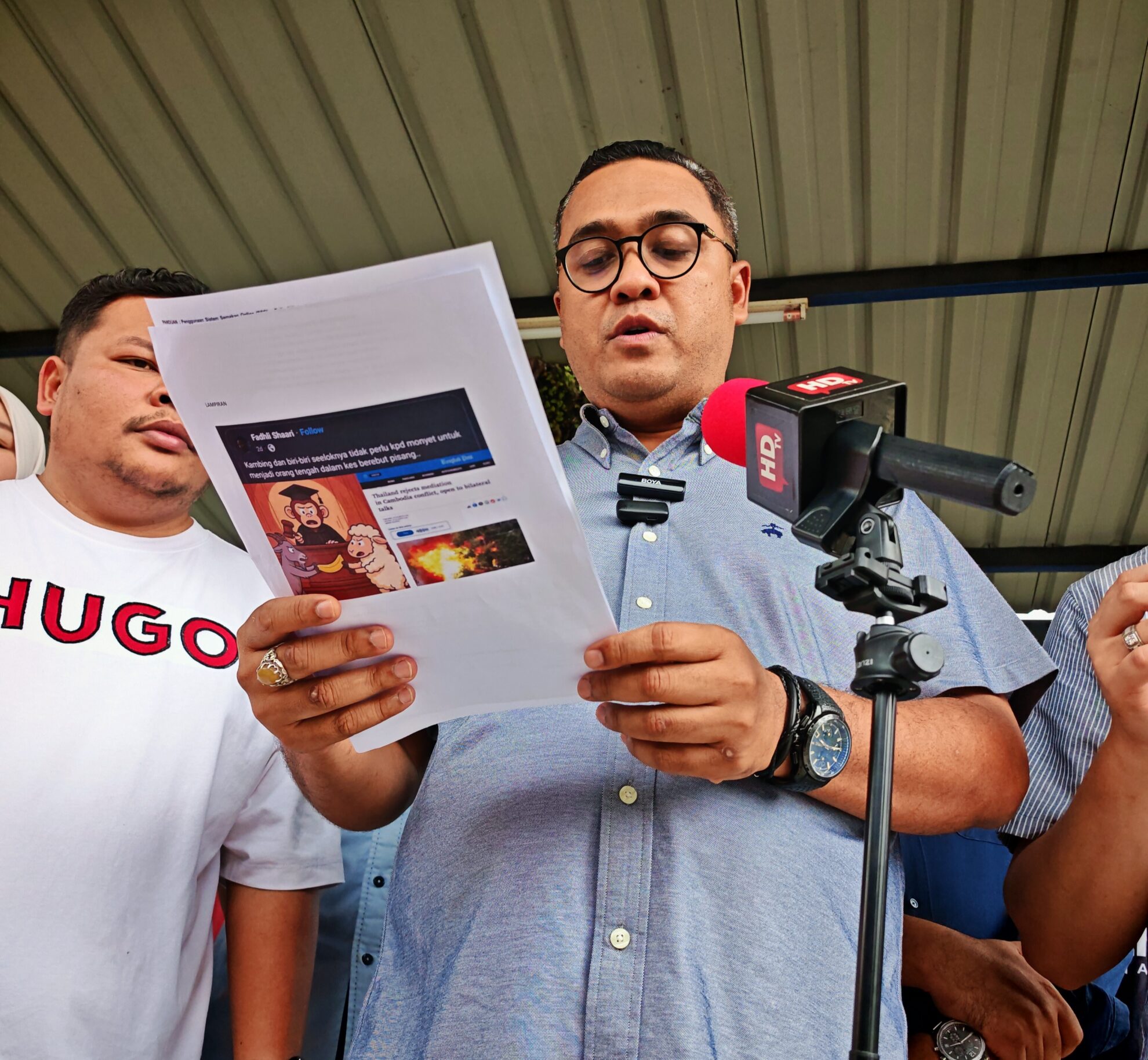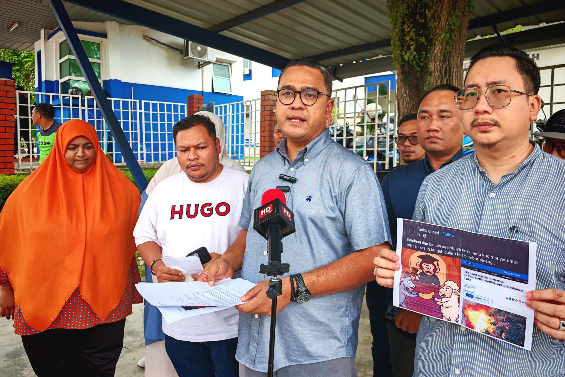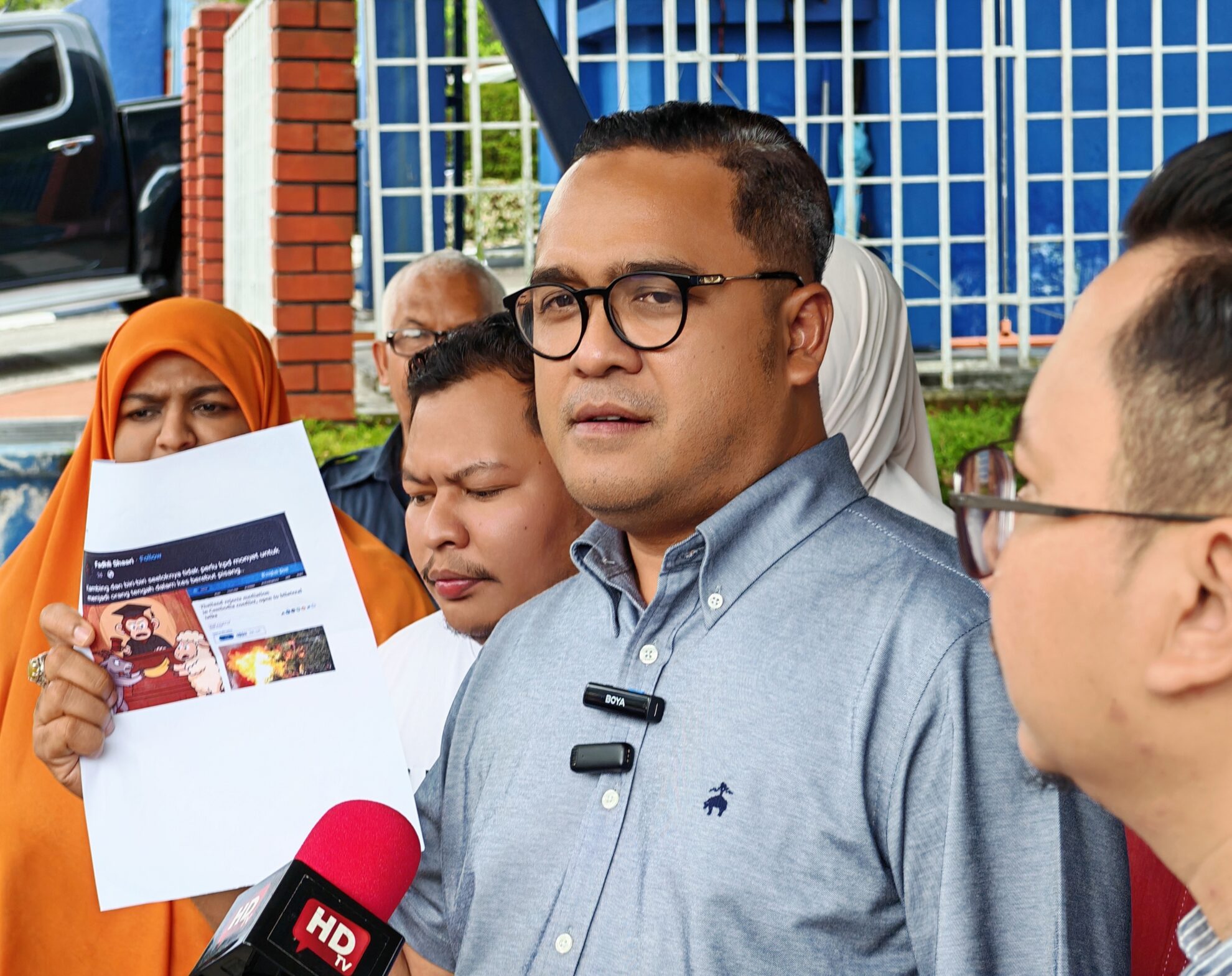 FOTO BERITA: Laporan Polis & Sidang Media oleh Pengarah Mobilisasi Amanah Nasional YB Tuan Abbas Salimi Che Azmi merangkap ADUN Sri Serdang mengenai karikatur Ketua Penerangan PAS Pusat, YB Ahmad Fadhli Shaari merangkap Ahli Parlimen Pasir Mas, di Ibu Pejabat Polis Daerah (IPD) Shah Alam, Selangor. 30hb Julai 2025 (Rabu)