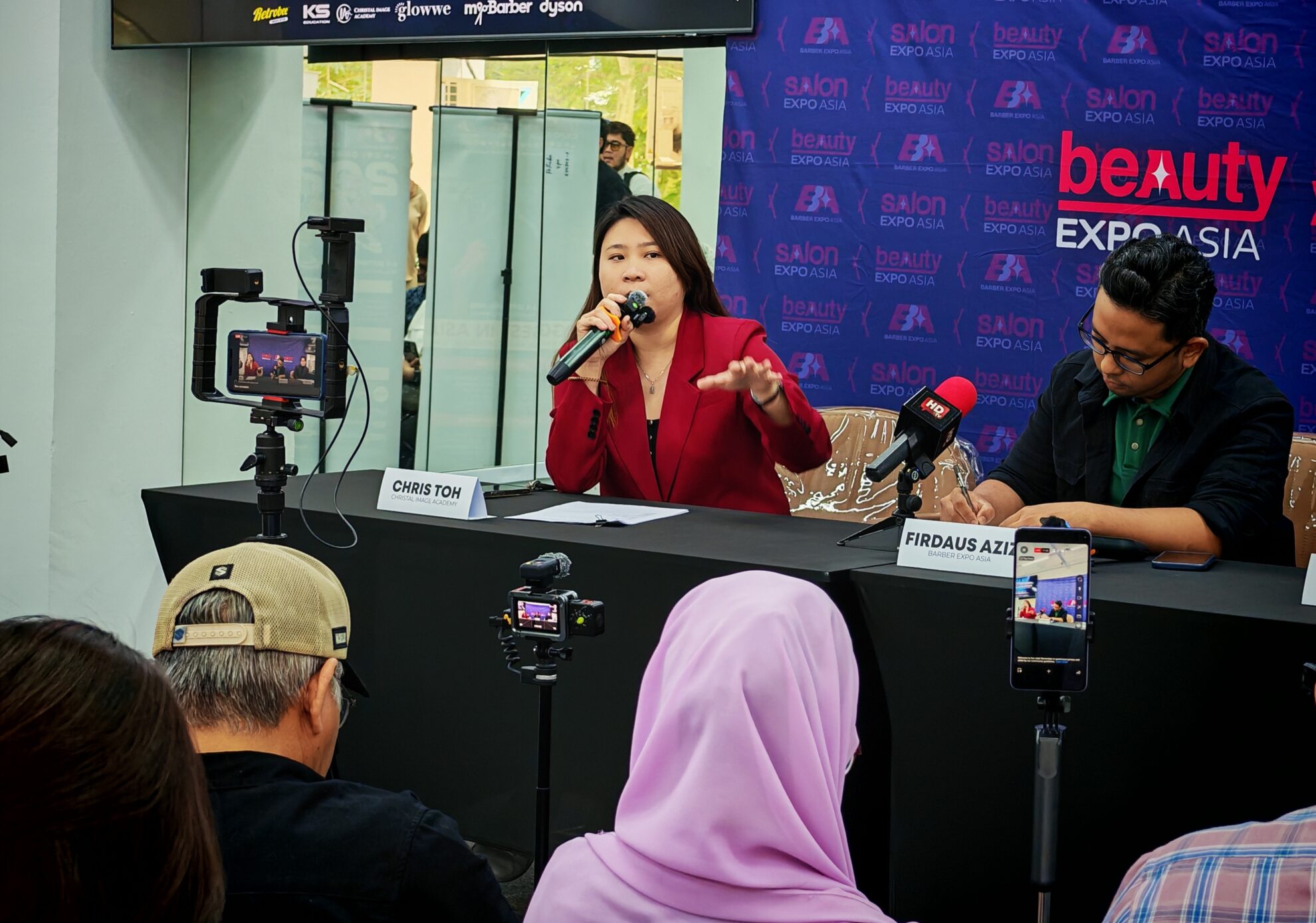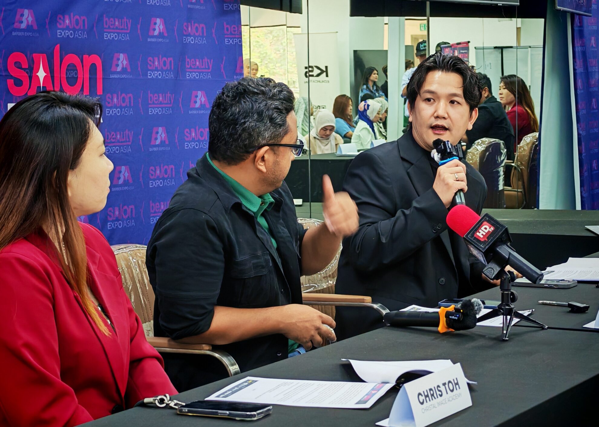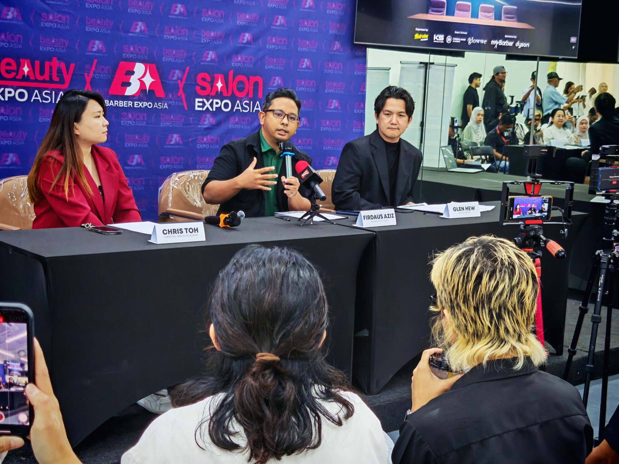 FOTO BERITA: Sidang Media oleh Firdaus Aziz Penganjur Retrobee Global, Glen Hew Penggaya Rambut & Pengasas KS Academy dan Chris Toh Pengasas Christal Image Academy sempena Beauty Expo Asia x Barber Expo Asia x Salon Expo Asia. Kami Salon, Damansara Perdana, Petaling Jaya, Selangor. 14hb Ogos (Khamis)