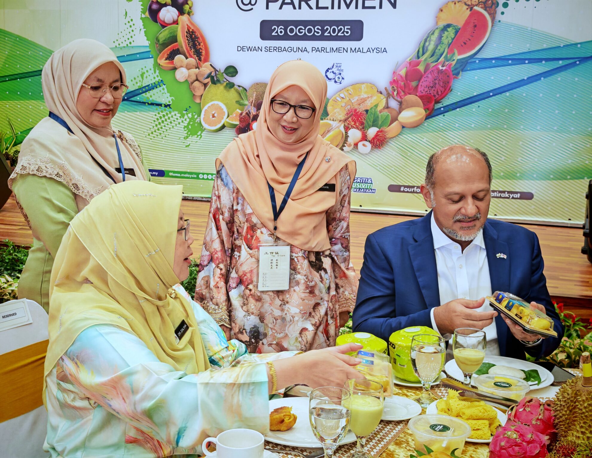 KUALA LUMPUR, 26 Ogos 2025 – Kementerian Pertanian dan Keterjaminan Makanan (KPKM) menerusi Lembaga Pemasaran Pertanian Persekutuan (FAMA) hari ini menganjurkan Kempen Jom Makan Buah-Buahan Tempatan @ Parlimen bertempat di Dewan Serbaguna Parlimen Malaysia. (Gambar: FB Mohamad Sabu)