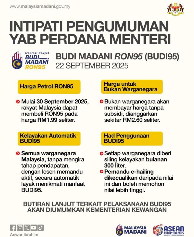 Menurut Menteri Kewangan II, Datuk Seri Amir Hamzah Azizan, larangan itu kekal seperti amalan sedia ada, dengan hanya rakyat Malaysia berusia 16 tahun ke atas dan memiliki lesen memandu sahaja sah layak menikmati subsidi RON95 pada kadar RM1.99 seliter.