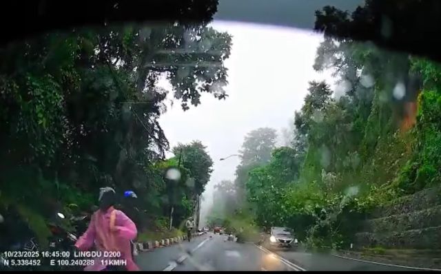 Tular rakaman kamera papan pemuka (dashcam) kereta memaparkan kejadian tanah runtuh di Jalan Tun Sardon di tengah Pulau Pinang petang tadi.