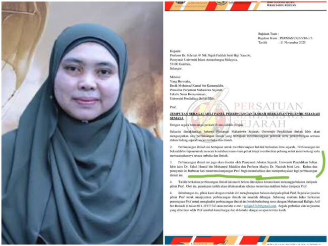 Menerusi perkongsian seorang pensyarah Jabatan Sejarah di UPSI, Dr. Sahul Hamid Mohamed Maiddin, pihak persatuan telah menghantar jemputan ke emel rasmi pensyarah terbabit sebagai ahli panel untuk mengupas lebih lanjut topik berkenaan.