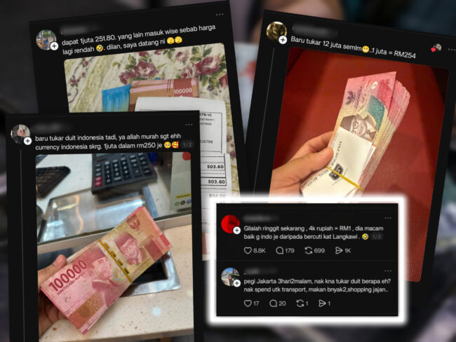 “Baru tukar duit Indonesia tadi. Ya Allah murah sangat eh mata wang Indonesia sekarang. 1 juta rupiah dalam RM250 je,” menurut satu perkongsian di Threads.