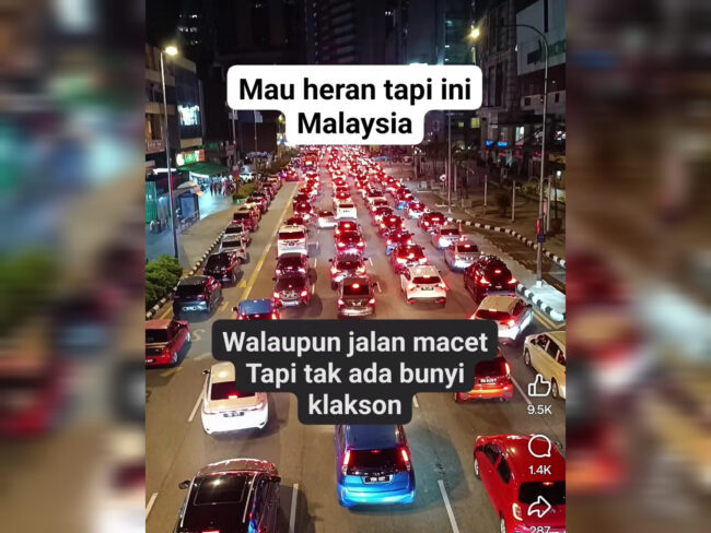 Netizen Indonesia meluahkan rasa hairan melihat suasana aman damai di Malaysia tanpa sebarang bunyi bising hon ketika trafik sedang tinggi.