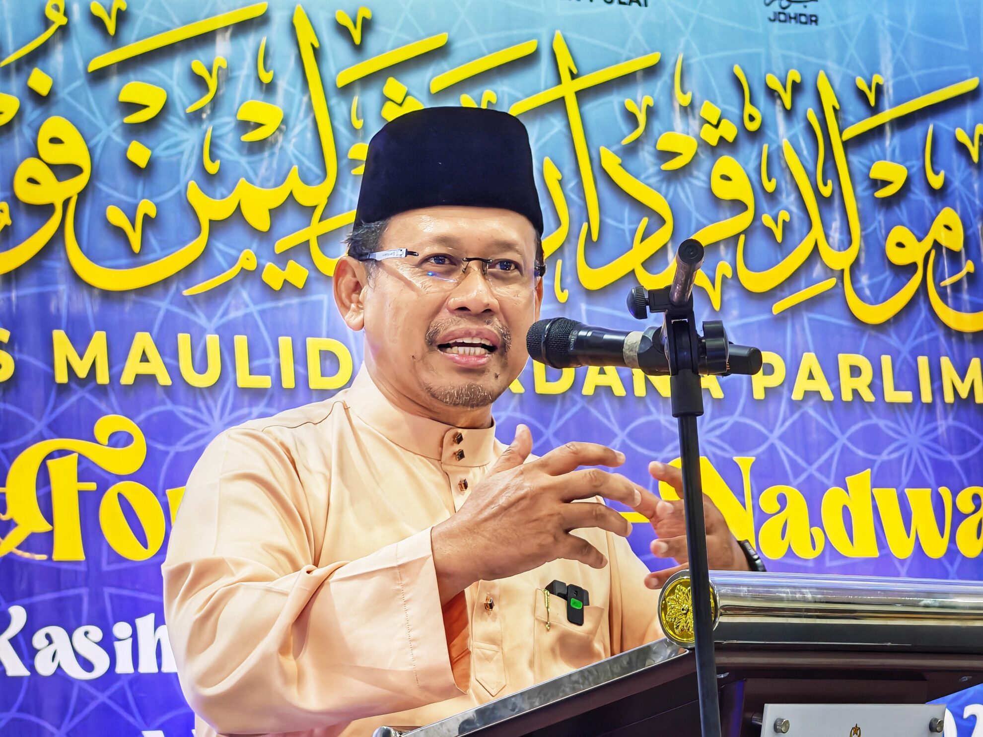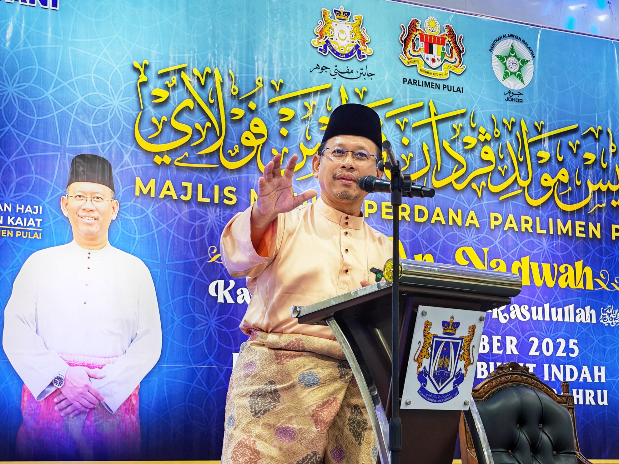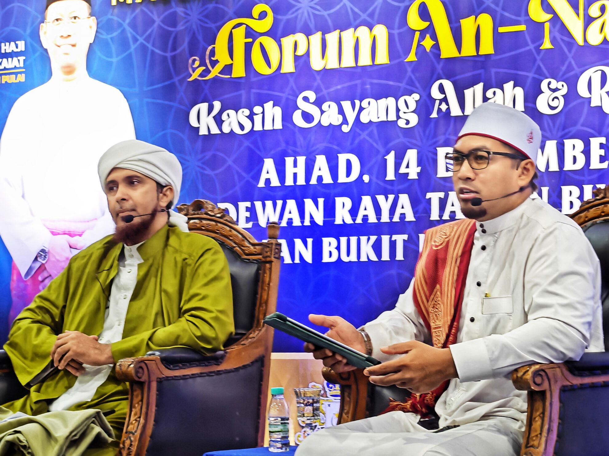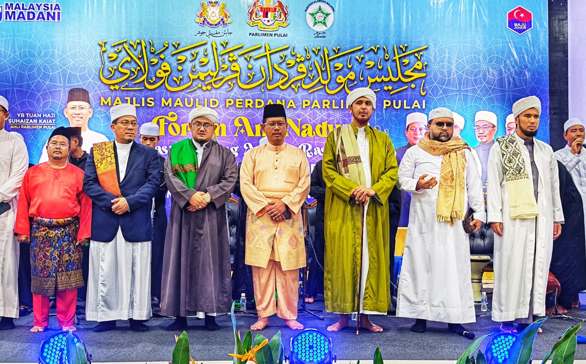 FOTO BERITA: Majlis Forum An-Nadwah – Kasih Sayang Allah & Rasulullah bersama Tuan Hj Halid Hj Sono Kadhi Besar Negeri Johor, Al-Habib Ali Zaenal Abidin Abu Bakar Al-Hamid Penasihat Rabithah Alawiyah Malaysia dan Dato’ Hj Ahmad Faisal Mohamed Timbalan Mufti. Turut hadir YB Tuan Hj Suhaizan Kaiat Ahli Parlimen Pulai di Dewanraya Taman Bukit Indah, Jalan Changkat Indah Utama, Johor Bahru, Johor. 14hb Disember 2025 (Ahad)