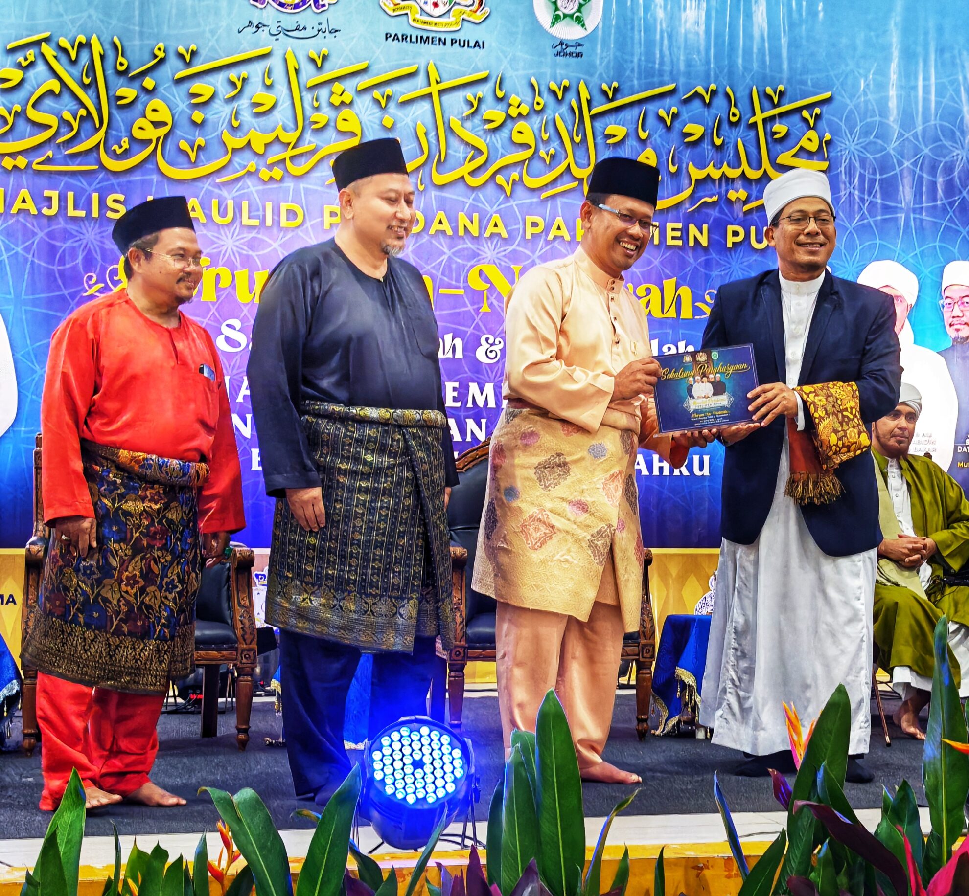 Turut memeriahkan majlis ialah YB Tuan Hj Suhaizan Kaiat, Ahli Parlimen Pulai, bersama para pemimpin masyarakat setempat dan penduduk sekitar yang hadir memenuhi dewan.