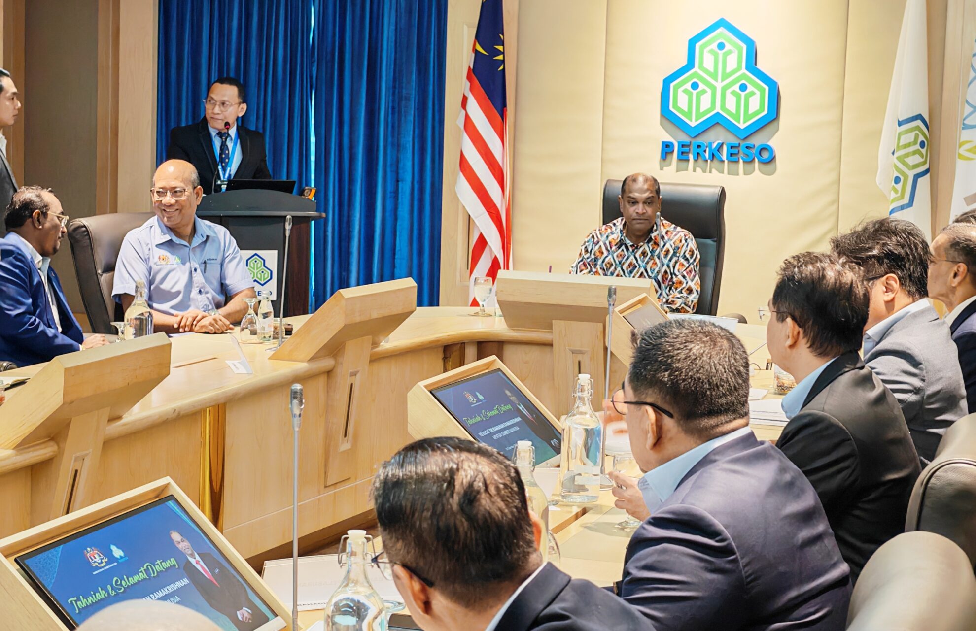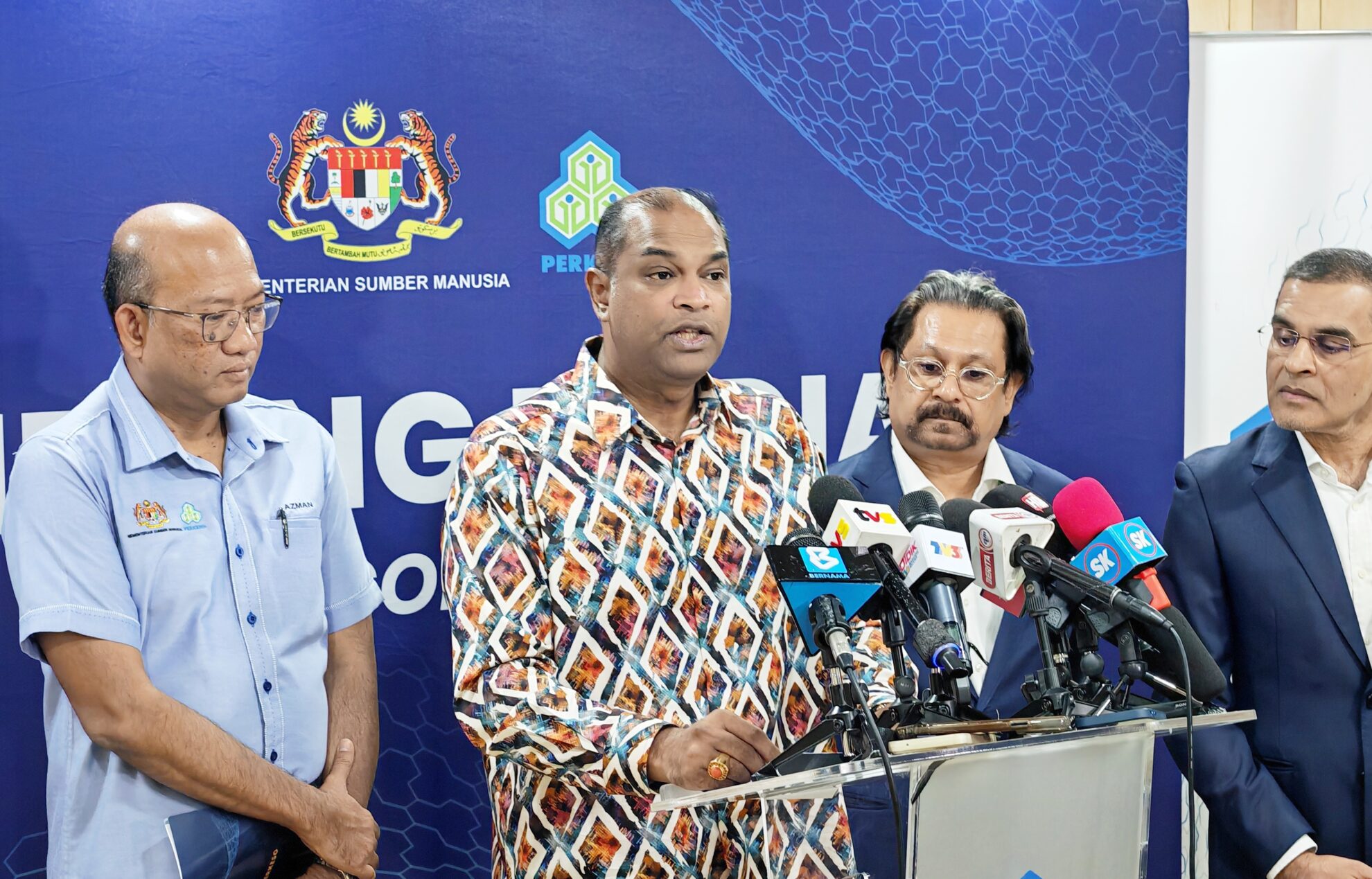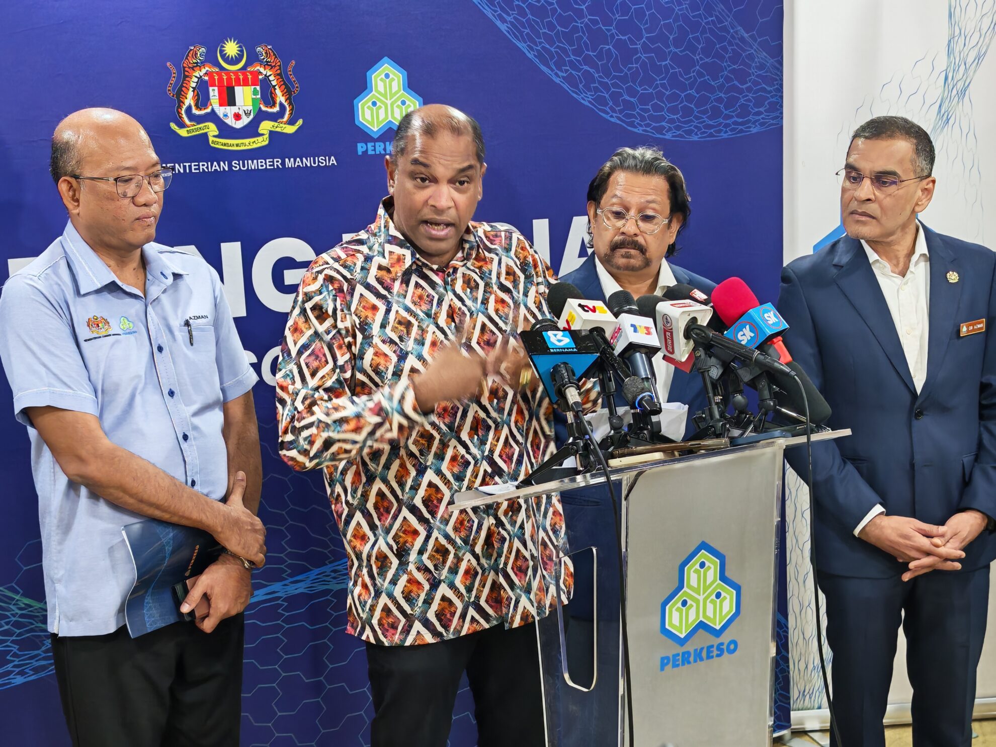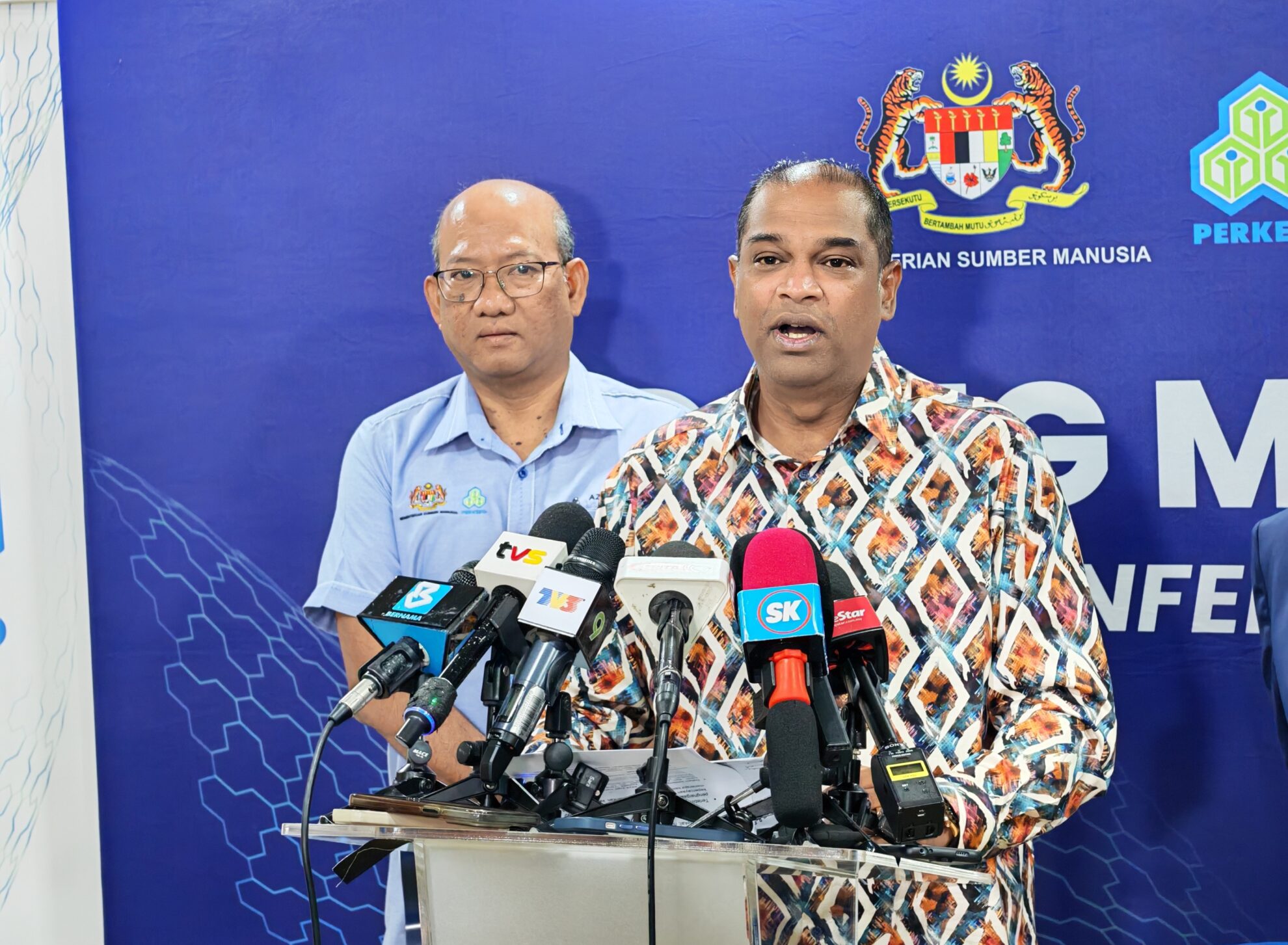 FOTO BERITA: Sidang Media sempena Lawatan Kerja Rasmi YB Dato’ Sri Ramanan Ramakrishnan Menteri Sumber Manusia bersama Ketua Setiausaha KESUMA, YBhg. Datuk Azman Mohd Yusof ke Menara PERKESO Jalan Ampang, Kuala Lumpur. 19hb Disember 2025 (Jumaat)
