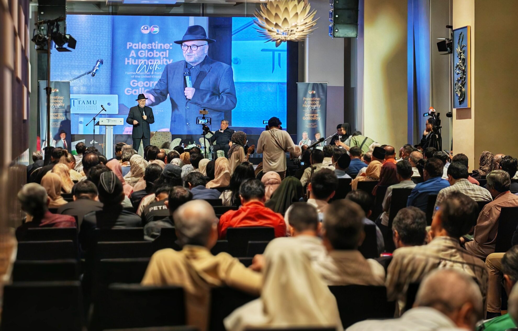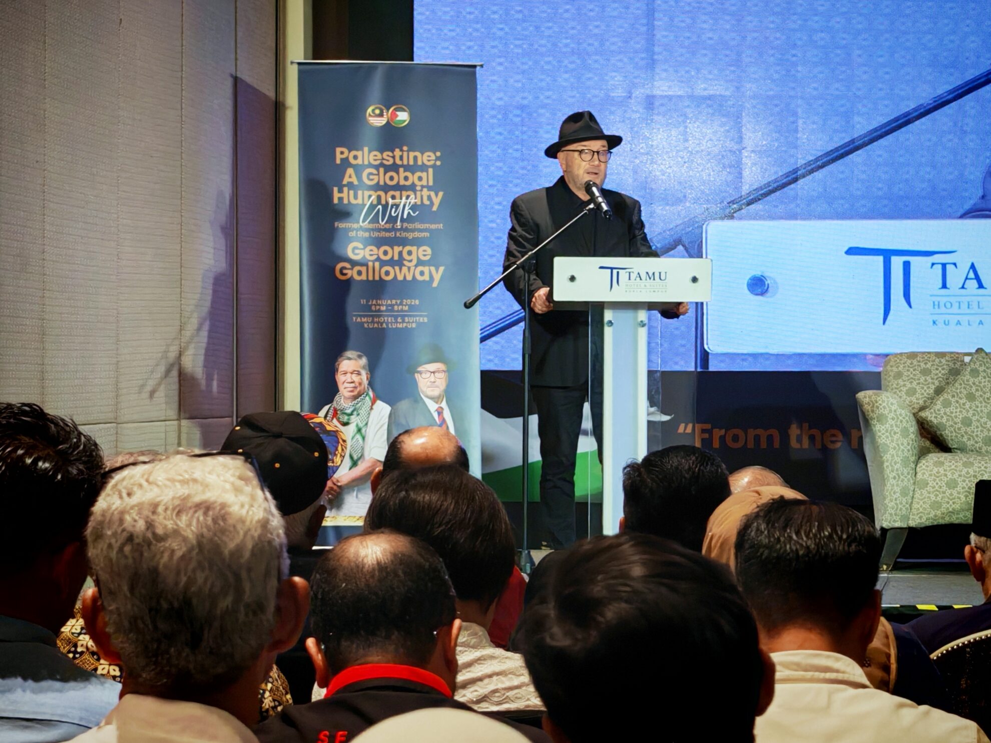 Dalam ucapannya, George Galloway merakamkan penghargaan kepada Kerajaan dan rakyat Malaysia atas sambutan serta sokongan padu terhadap perjuangan Palestin, sambil menyifatkan Malaysia sebagai antara negara yang konsisten menyuarakan keadilan dan kemanusiaan di peringkat antarabangsa.