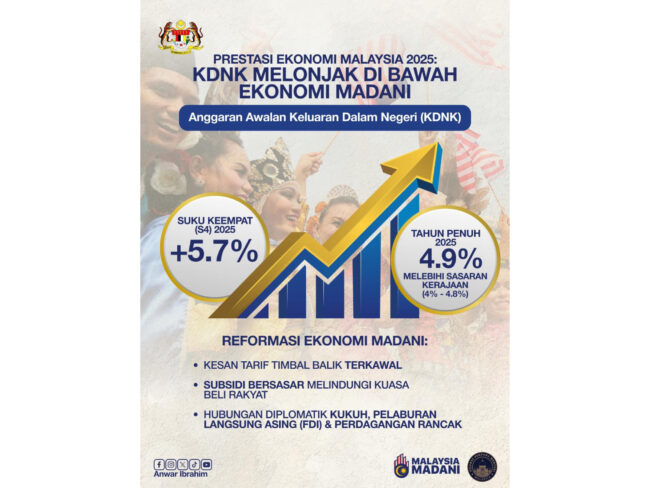 Anggaran pertumbuhan Keluaran Dalam Negeri Kasar (KDNK) 2025 yang berkembang sebanyak 4.9% telah mengatasi ambang unjuran rasmi kerajaan antara 4% hingga 4.8%.