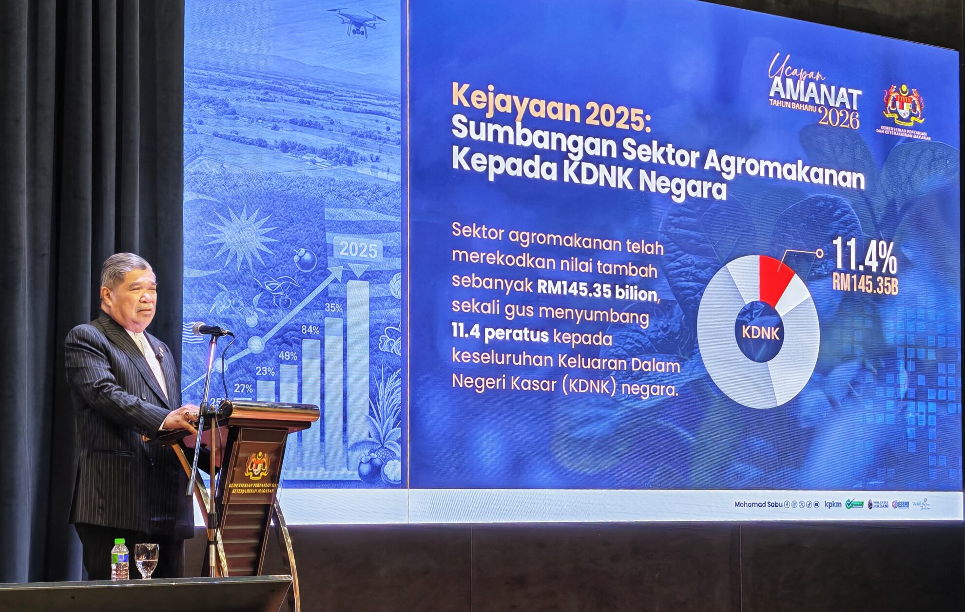 Menteri Pertanian dan Keterjaminan Makanan, YB Datuk Seri Haji Mohamad Sabu, berkata demikian ketika menyampaikan Amanat Tahun Baharu 2026 bersama Warga KPKM di Dewan Serbaguna KPKM, Wisma Tani, Presint 4, hari ini.