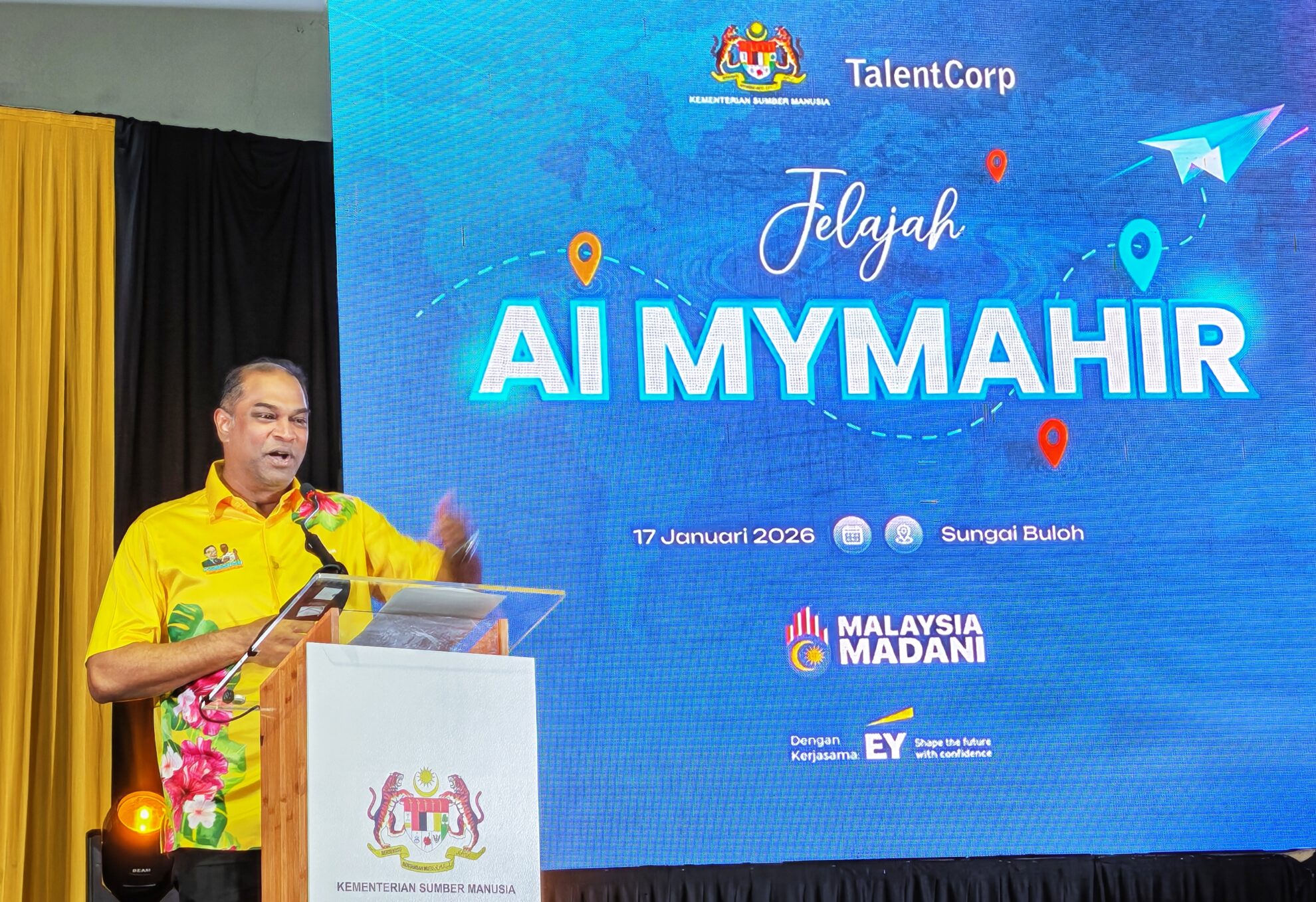 FOTO BERITA: Majlis Pelancaran Jelajah AI MyMahir disempurnakan oleh YB Dato’ Sri Ramanan Ramakrishnan, Menteri Sumber Manusia serta MoU antara TalentCorp dan EY Malaysia di Dewan Meranti, Seksyen U20, Sungai Buloh, Selangor. 17hb Januari 2026 (Sabtu)