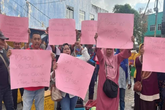 Semalam, dilaporkan lebih 30 peniaga terbabit berkumpul mengadakan protes membantah arahan perpindahan ke pasar baharu yang terletak kira-kira dua kilometer dari pasar lama.