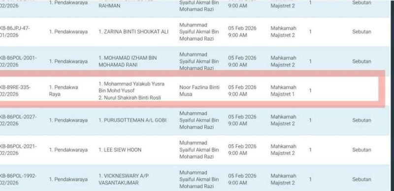 Pengendali kumpulan Facebook ‘Dari D9 Ke Tahanan Tanpa Bicara’ menegaskan bahawa paparan tangkap layar tular memaparkan senarai kes di Mahkamah Majistret 1 melibatkan dua individu, iaitu Mohammad Ya’akub Yusra Mohd Yusof dan Nurul Shakirah Rosli, tidak boleh dianggap sebagai bukti sabitan kesalahan.