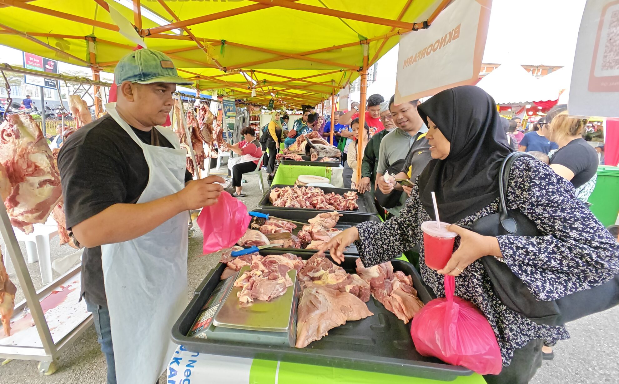 “Harga yang ditawarkan amat berpatutan, antaranya ayam RM10 seekor dan daging RM25. Malah ada tawaran ‘happy hour’ seperti pau enam biji pada harga RM1. Jangan lepaskan peluang ini,” ujarnya.