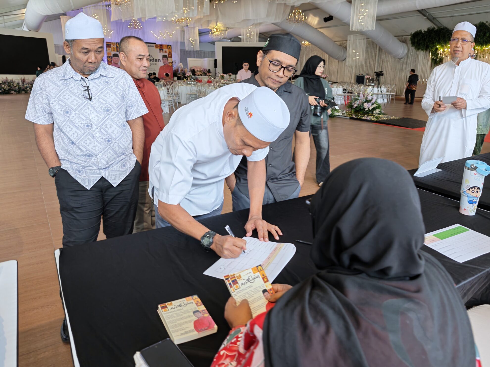 “Selain sumbangan kewangan, kita juga teruskan pemberian kurma setiap tahun. Kopiah putih diteruskan, manakala hari ini kita sediakan edisi khas warna hitam untuk pimpinan surau dan masjid. Telekung pula diperuntukkan khusus buat muslimat yang aktif di surau dan masjid,” jelasnya.