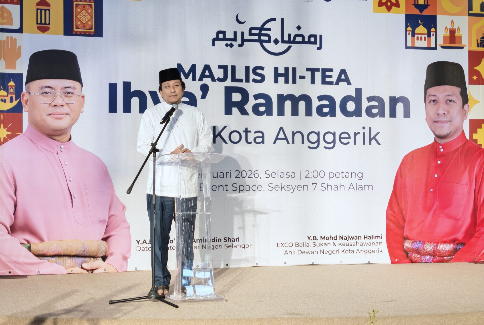 Program Serahan Sumbangan Ihya’ Ramadan DUN Kota Anggerik 2026 telah disempurnakan oleh Najwan Halimi, EXCO Belia, Sukan dan Keusahawanan Negeri Selangor merangkap ADUN Kota Anggerik, dalam satu majlis yang berlangsung di Dewan Petals, Seksyen 7, Shah Alam, hari ini.