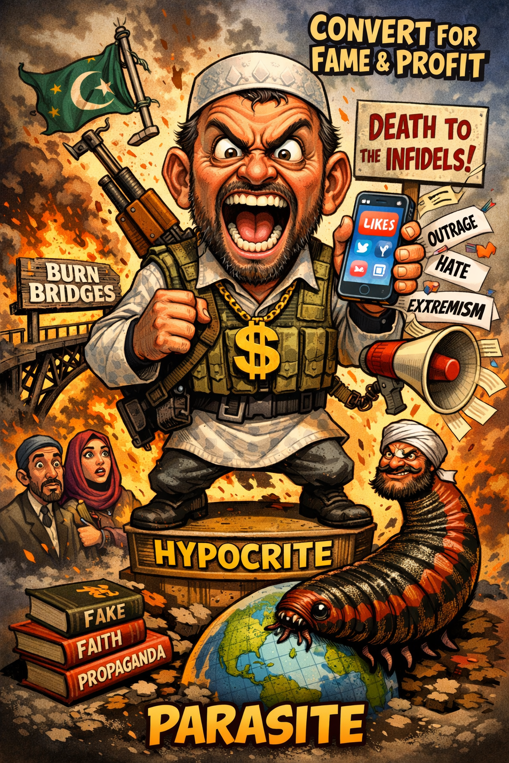 Your understanding of your new faith is a mile wide and an inch deep. You trade in caricatures and soundbites. Your sole purpose is to manufacture fury, stoking the fires of sectarianism so that your own star can shine a little brighter in the smoke.