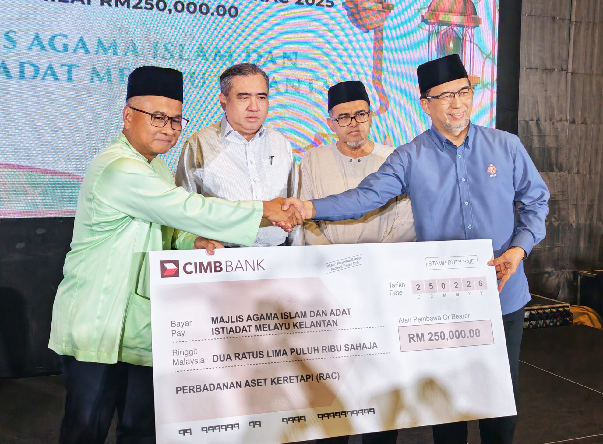 Perbadanan Aset Keretapi (RAC), agensi kerajaan di bawah Kementerian Pengangkutan Malaysia, terus komited menunaikan tanggungjawab sosial korporat apabila menyalurkan sebanyak RM500,000 zakat perniagaan bagi Tahun Kewangan 2025 kepada dua institusi zakat negeri dalam Majlis Penyerahan Zakat Korporat RAC Tahun 2025 & Program Ihya Ramadan Bersama Anak Yatim dan Media di Aloft Kuala Lumpur Sentral, hari ini.