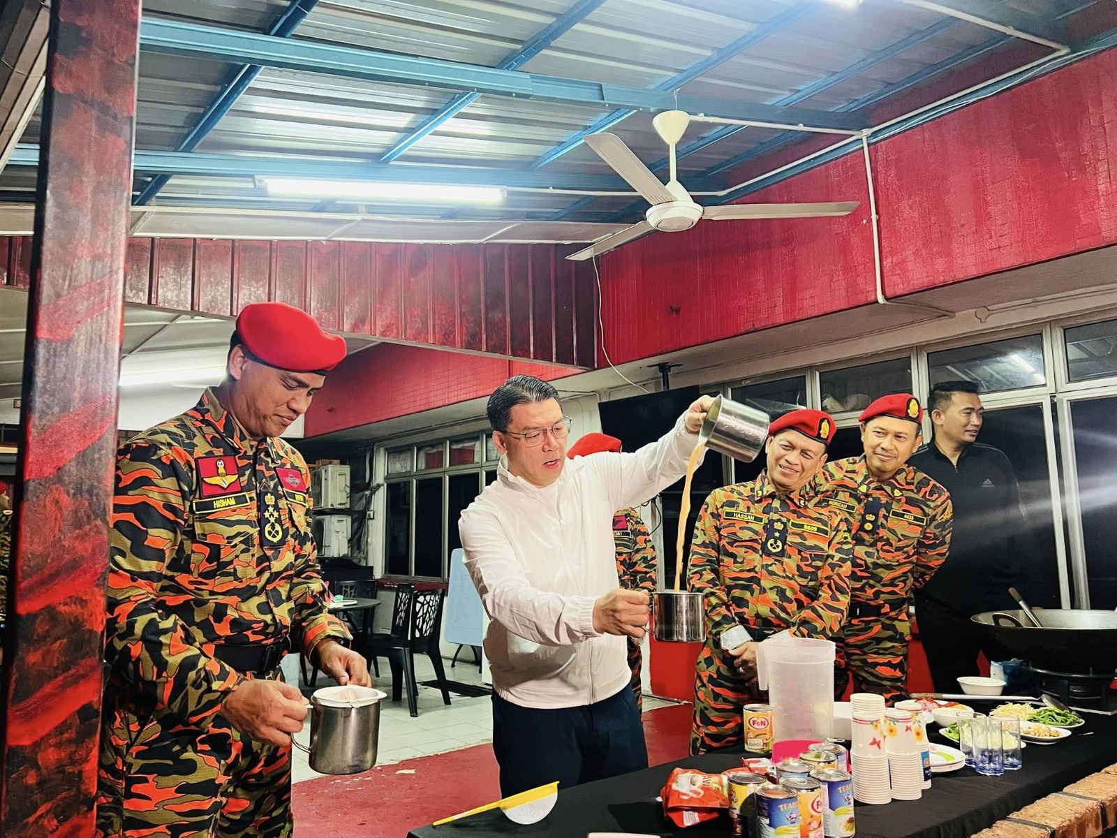 Kehadiran beliau bukan sekadar simbolik, malah disertai dengan tindakan turun sendiri membantu menyediakan juadah sahur kepada anggota bomba, termasuk menyediakan hidangan teh tarik sebelum duduk semeja bersama mereka yang sedang bertugas.