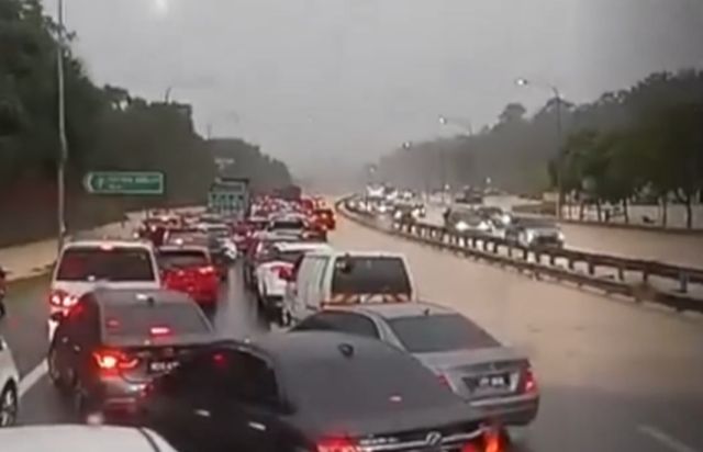 Laluan empat lorong arah selatan di KM287 lebuh raya itu ditenggelami banjir sepenuhnya susulan hujan lebat yang berlaku sejak jam 6 petang.
