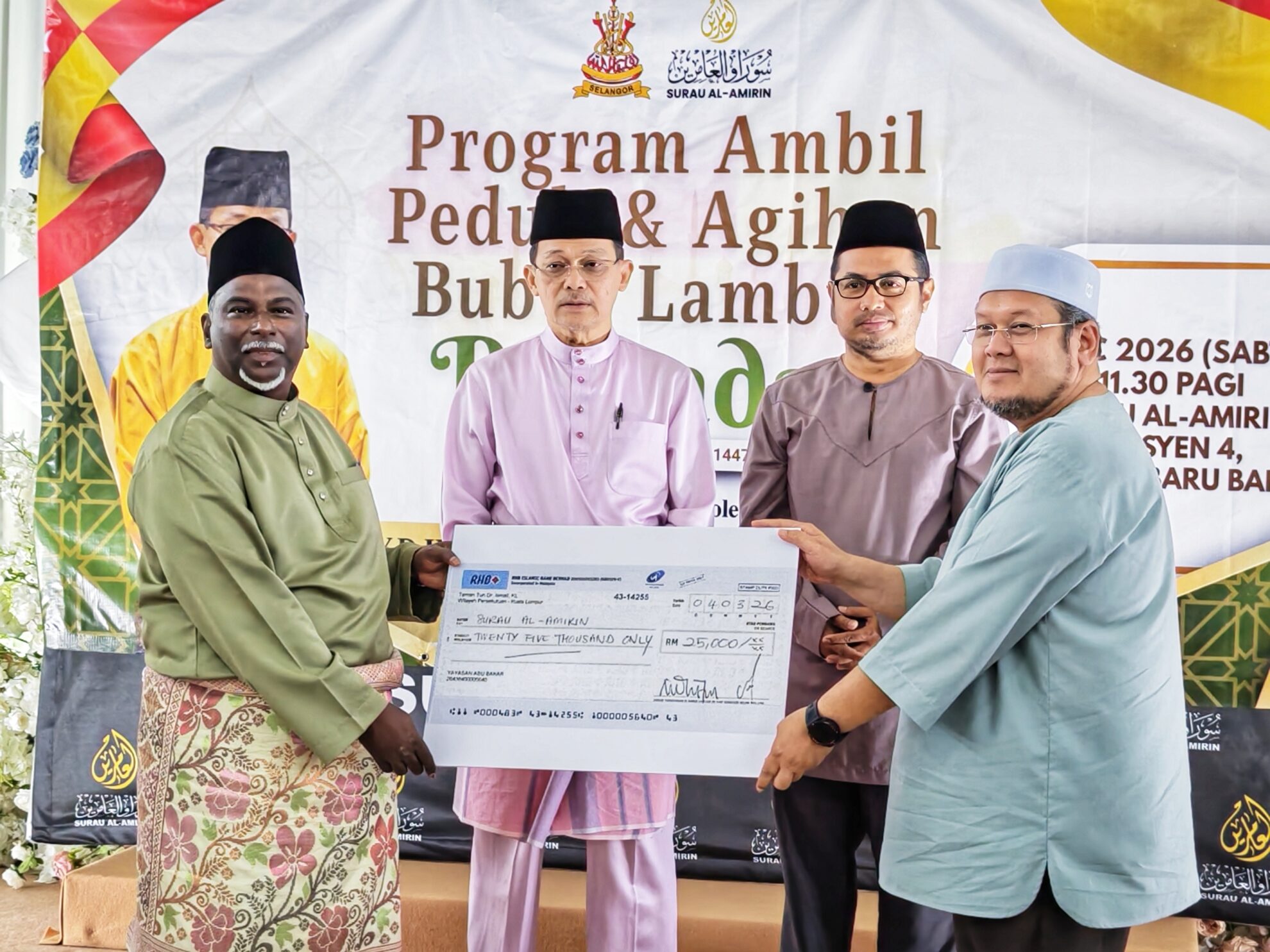 Pengerusi Surau Al-Amirin, Dato’ Abdul Rashid Mohd Ghani merakamkan penghargaan kepada semua pihak yang terlibat dalam menjayakan program berkenaan dan berharap usaha sebegini akan terus diperkasa sebagai platform menyuburkan nilai kebersamaan, ihsan serta tanggungjawab sosial dalam komuniti.