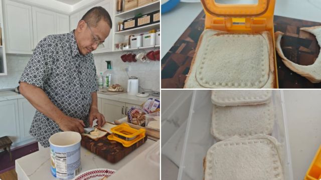 “Aiskrim tak boleh terlalu banyak, nanti cepat meleleh. Roti kena tekan kemas, kalau tidak gorengan tak menjadi.