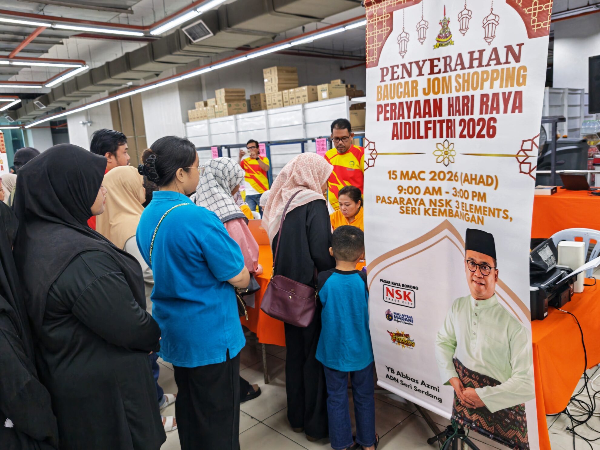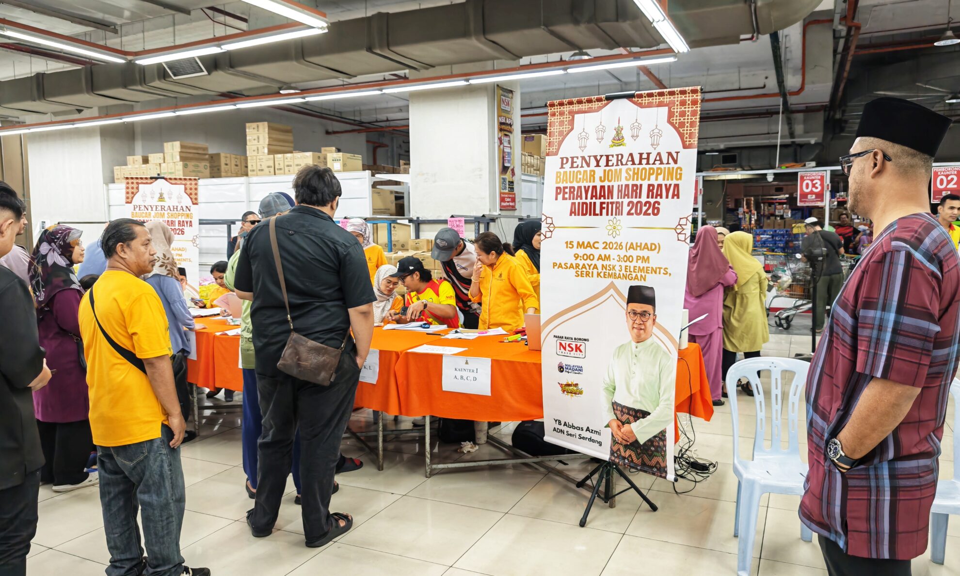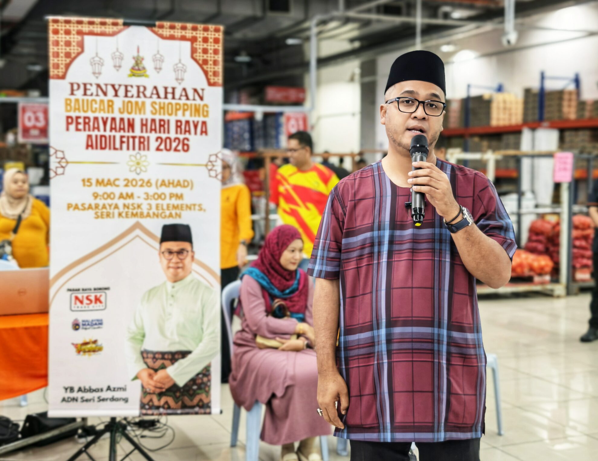 FOTO BERITA: Majlis Penyerahan Baucar Jom Shopping Perayaan Hari Raya Aidilfitri 2026 bersama YB Abbas Azmi, ADUN Seri Serdang di Pasaraya NSK 3 Elements, Seri Kembangan, Serdang, Selangor. 15 Mac 2026 (Ahad)