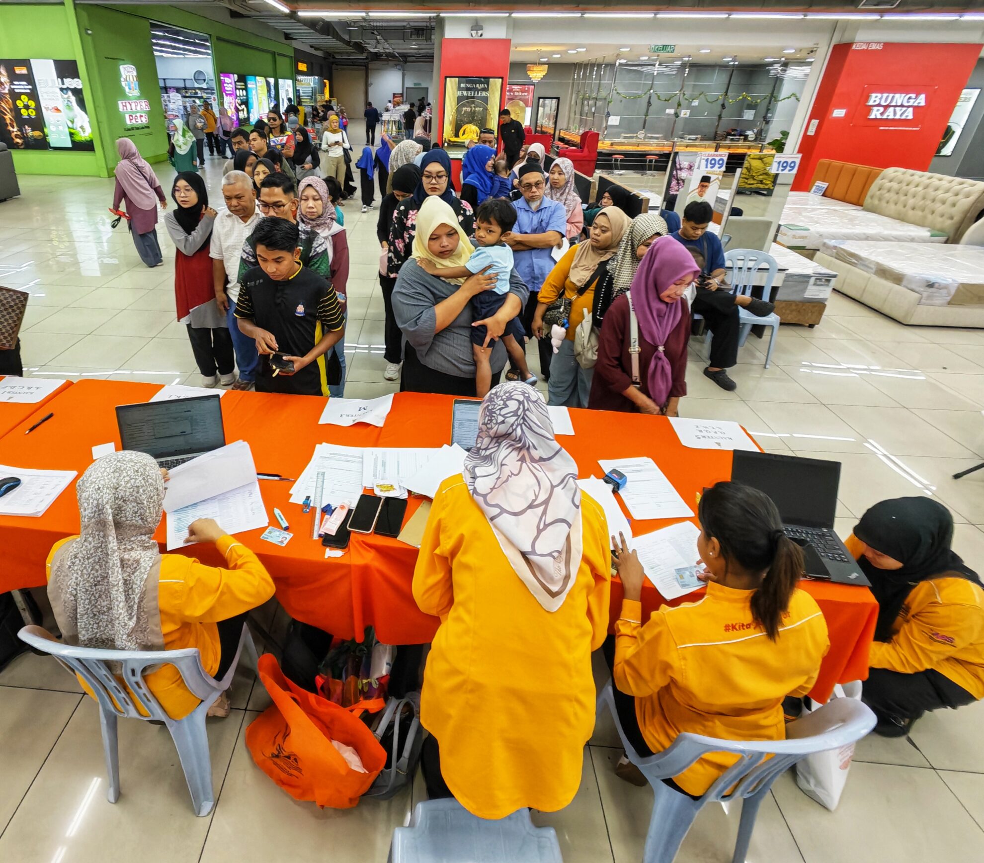 Seramai ratusan penerima khususnya golongan belia serta pemandu e-hailing dan p-hailing menerima manfaat menerusi Majlis Penyerahan Baucar Jom Shopping Perayaan Hari Raya Aidilfitri 2026 yang disempurnakan oleh Abbas Azmi, Ahli Dewan Undangan Negeri (ADUN) Seri Serdang di Pasaraya NSK 3 Elements, hari ini.