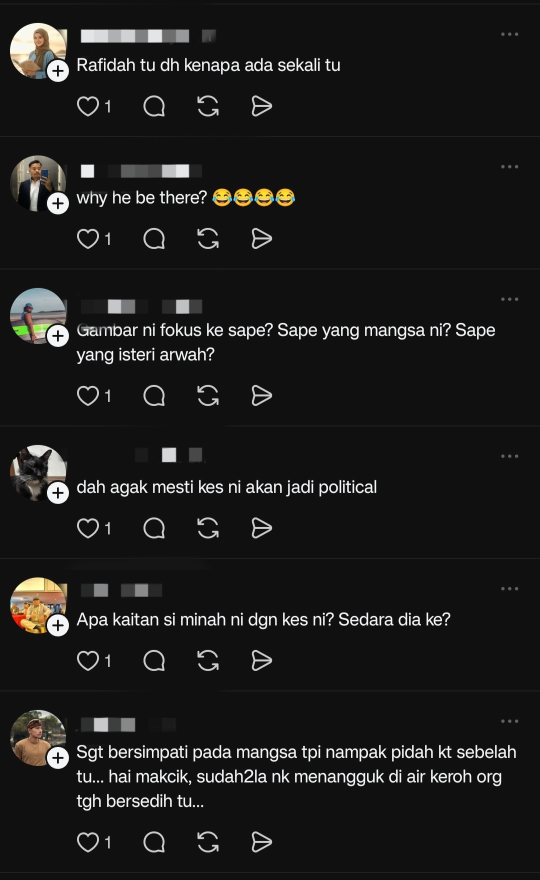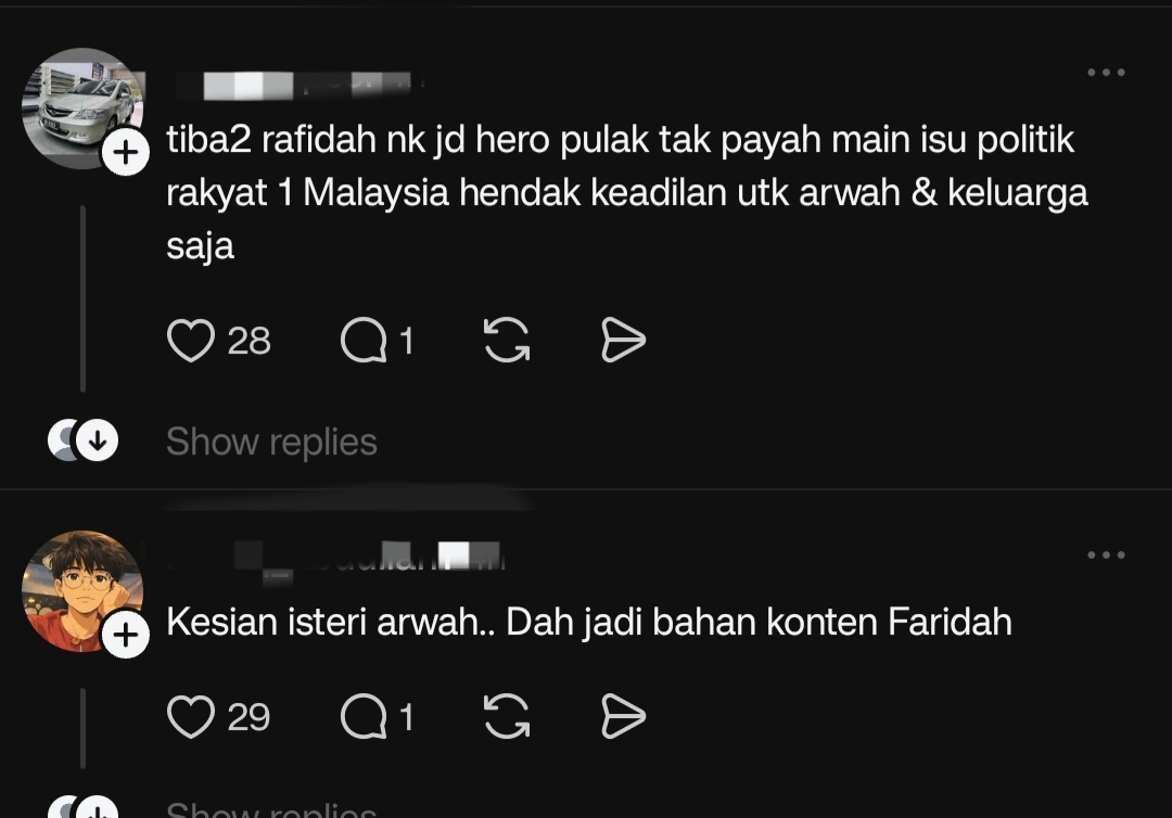 “Ada muka Albert Tei, muka Rafidah, muka-muka pembangkang. Kesudahnya pembangkang tunggang kes mangsa dilanggar pemandu mabuk ini.