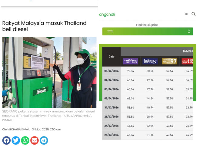 Baru sahaja semalam nampak berita kononnya rakyat Malaysia menyeberangi sempadan untuk mengisi diesel yang lebih murah di Thailand.