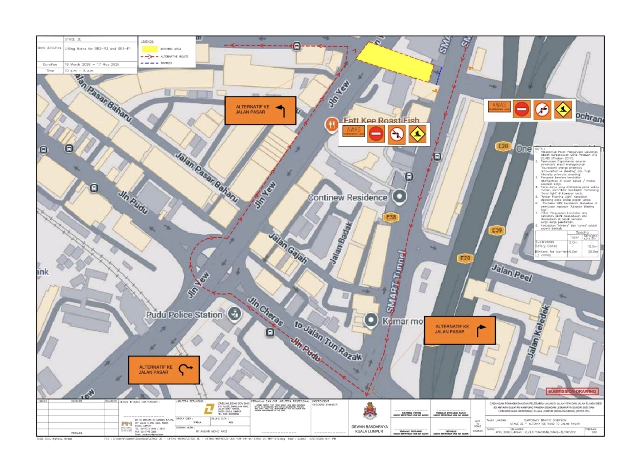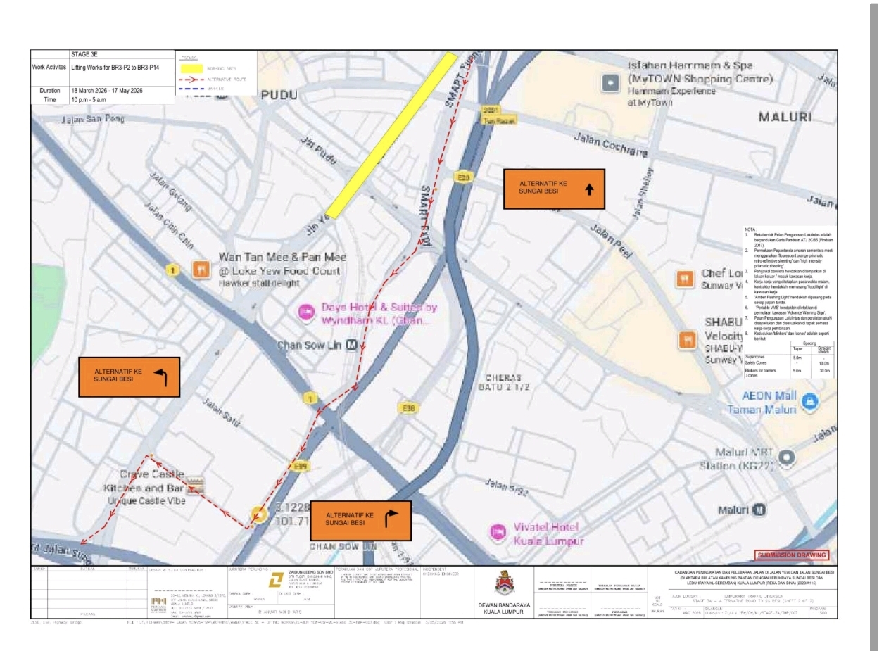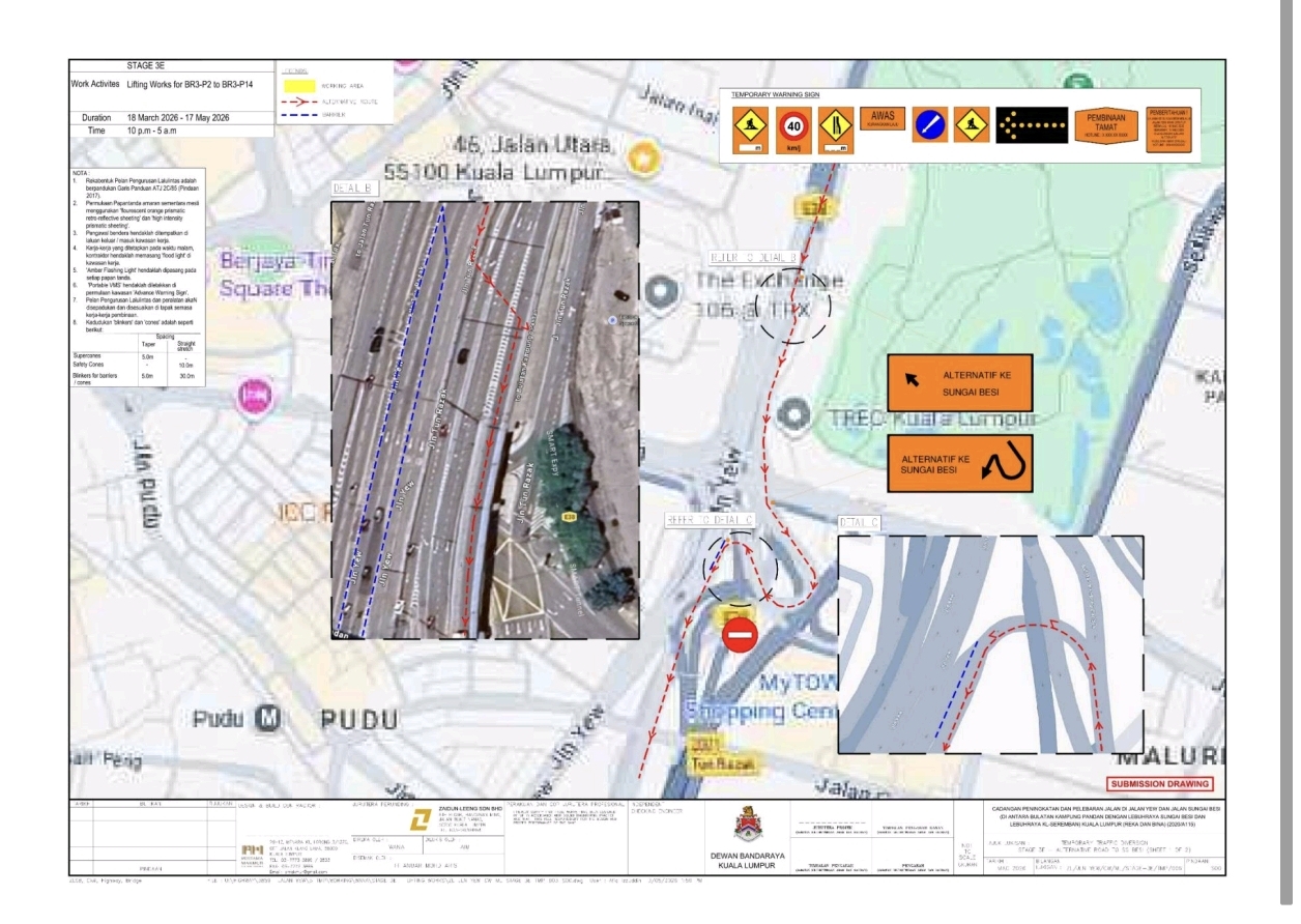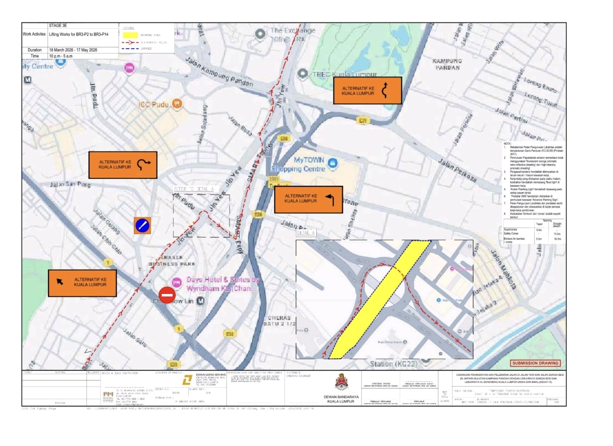Penutupan ini melibatkan laluan utama dari kawasan Tun Razak Exchange (TRX) hingga Bulatan Pudu, selain turut menjejaskan sebahagian Jalan Cochrane dan Jalan Pasar, iaitu dari persimpangan Masjid Alam Shah hingga ke Petron Jalan Pasar.