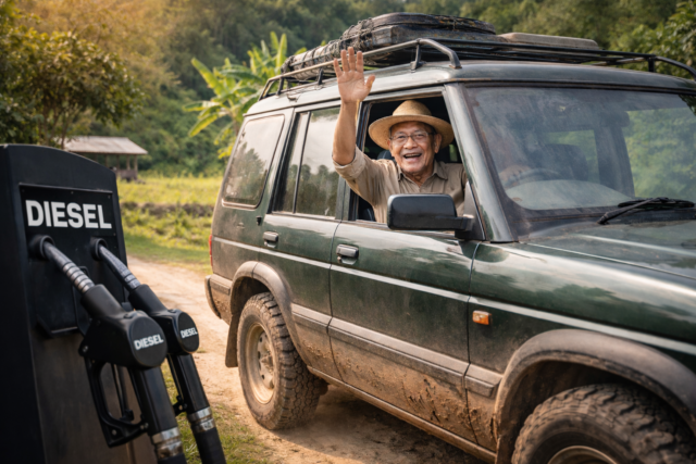 Saya guna Land Rover Discovery 2.0 tahun 2001. Dah berusia kira-kira 25 tahun. Masih mampu membawa saya ke Laman Pok Nik dengan selesa. Cuma, bila harga diesel naik, tak cukup RM200 sekali isi.