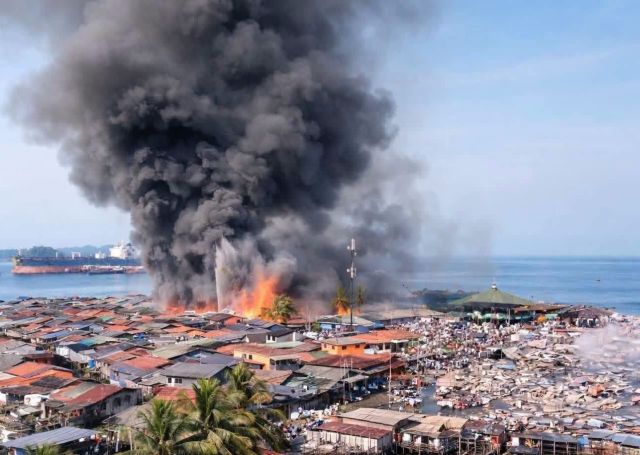Dalam masa sama, angin kencang serta kedudukan rumah yang rapat menyebabkan kebakaran merebak dengan cepat selain laut surut menyukarkan usaha mendapatkan sumber bekalan air terbuka.