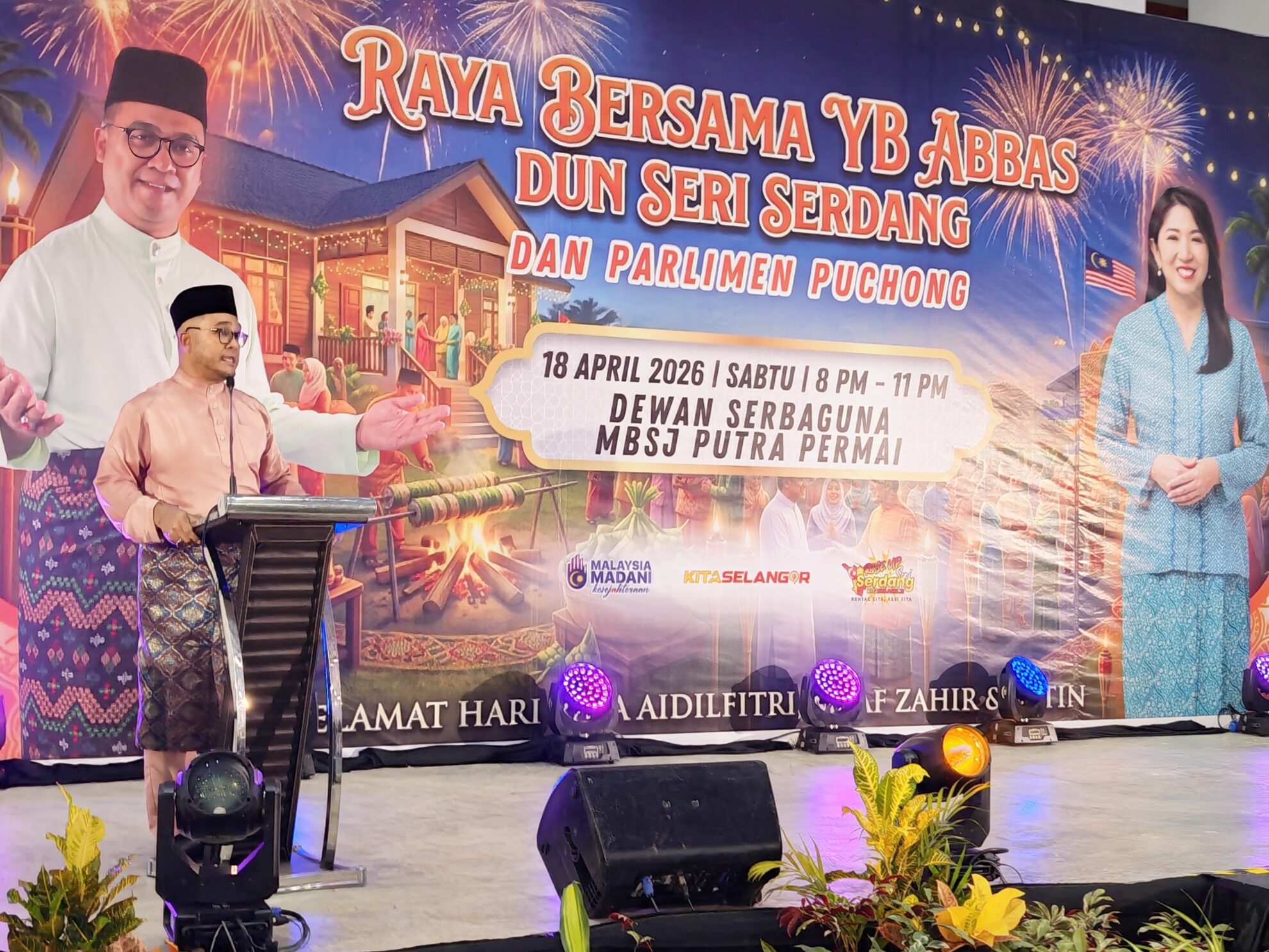 FOTO BERITA: Majlis Aidilfitri 2026 bersama YB Abbas Azmi ADUN Seri Serdang dan YB Puan Yeo Bee Yin Ahli Parlimen Puchong. Turut hadir Dato’ Menteri Besar Selangor Dato’ Seri Amirudin Shari, YB Dato’ Ir. Izham Hashim, YB Tuan Danial Al-Rashid Haron Aminar Rashid ADUN Batu Tiga di Dewan Serbaguna MBSA, Putra Permai Lestari Perdana, Seri Kembangan, Serdang, Selangor. 18hb April 2026 (Sabtu)