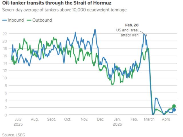 Namun, sejurus selepas konflik bermula, jumlah kapal yang bergerak jatuh mendadak, sampai hampir kosong dalam tempoh tertentu.