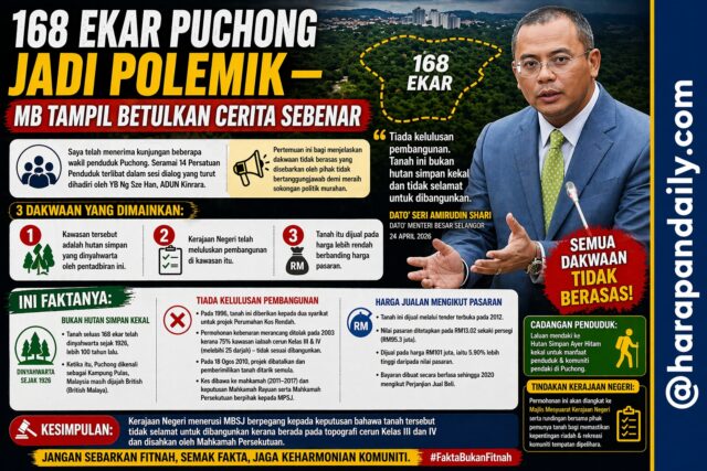 “Tanah seluas 168 ekar itu bukan Hutan Simpan Kekal. Ia telah dinyahwarta sejak 1926, lebih 100 tahun lalu,” katanya dalam kenyataan.