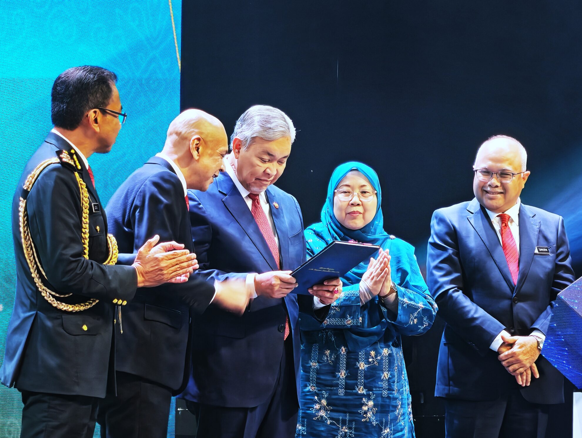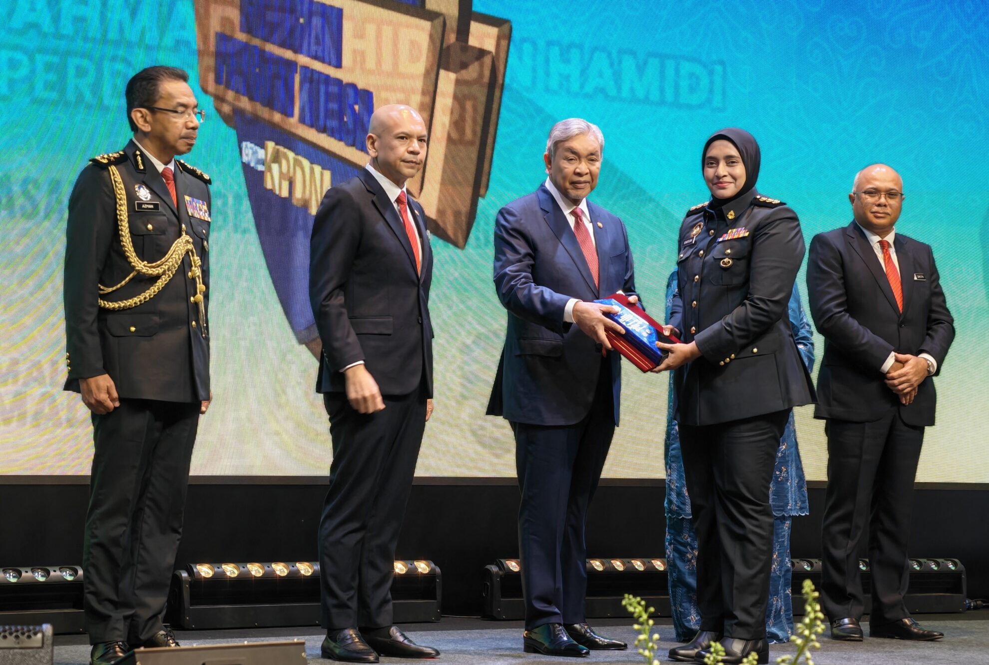 FOTO BERITA: Majlis Pelancaran Dasar Pengguna Negara 2.0 dan Penyampaian Anugerah Kecemerlangan Penguatkuasaan 2025 oleh YAB Dato’ Seri Dr. Ahmad Zahid Hamidi Timbalan Perdana Menteri. Turut hadir YB Datuk Armizan Mohd Ali Menteri Perdagangan Dalam Negeri dan Kos Sara Hidup di Cyber Event Hall, Cyberjaya Jalan Teknokrat 7, Cyber 5, Cyberjaya, Selangor. 28hb April 2026 (Selasa)